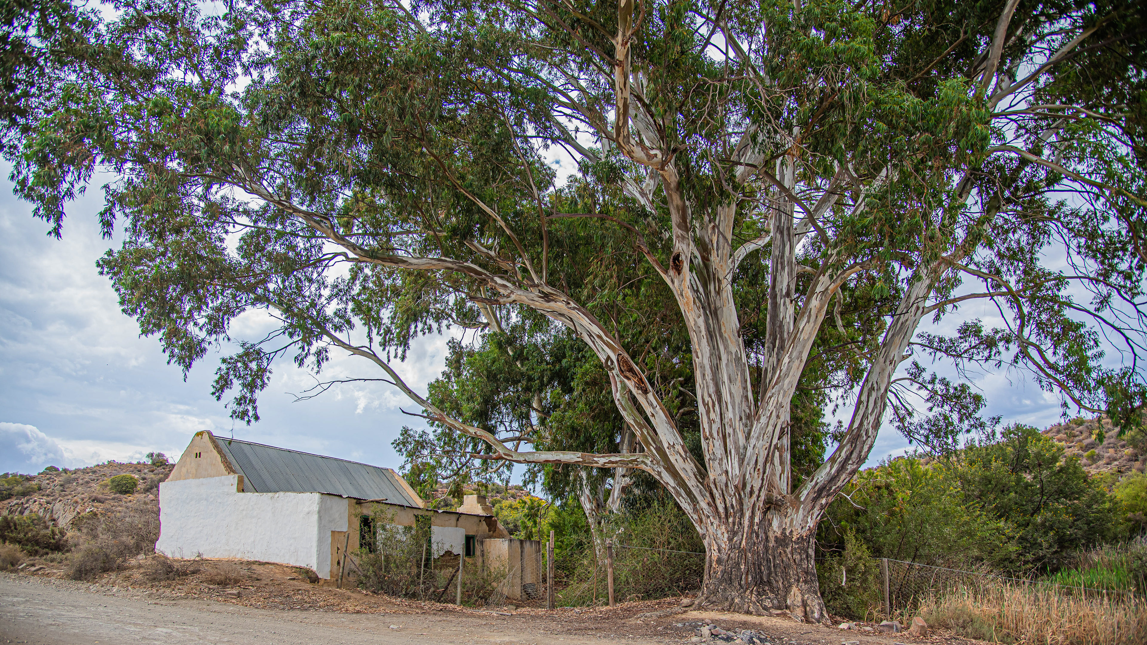 hier in die skadu van ’n reuse bloekom staan die oorblyfsels van ’n droom.